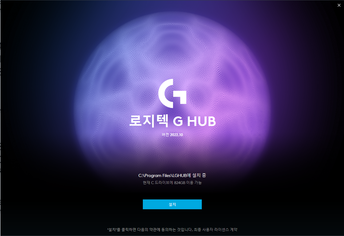2] As shown below, click the blue button to install the already downloaded lghub_installer.exe file.