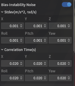 Bias-instability, Random Walk(Rate Random Walk), and White Noise(Velocity(Angle) Random Walk) can be applied to IMU sensor.