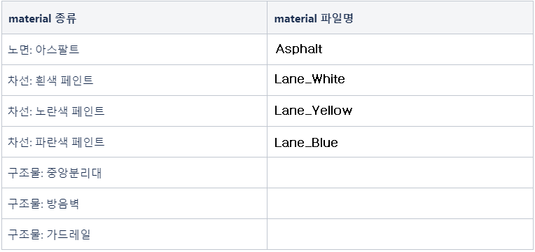 Add the mat_config.json file as below to specify the material type of the road mesh you want to include.