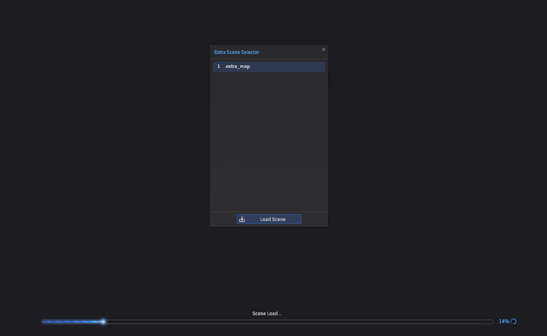 The Extra Scene Selector window appears on the simulator loading screen, as shown below. Select the custom map you created (Example: extra_map) and click Load Scene.
