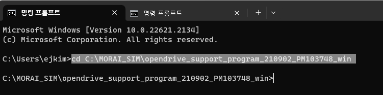 Run a command prompt window and move to where the opendrive_support_program shortcut file exists.