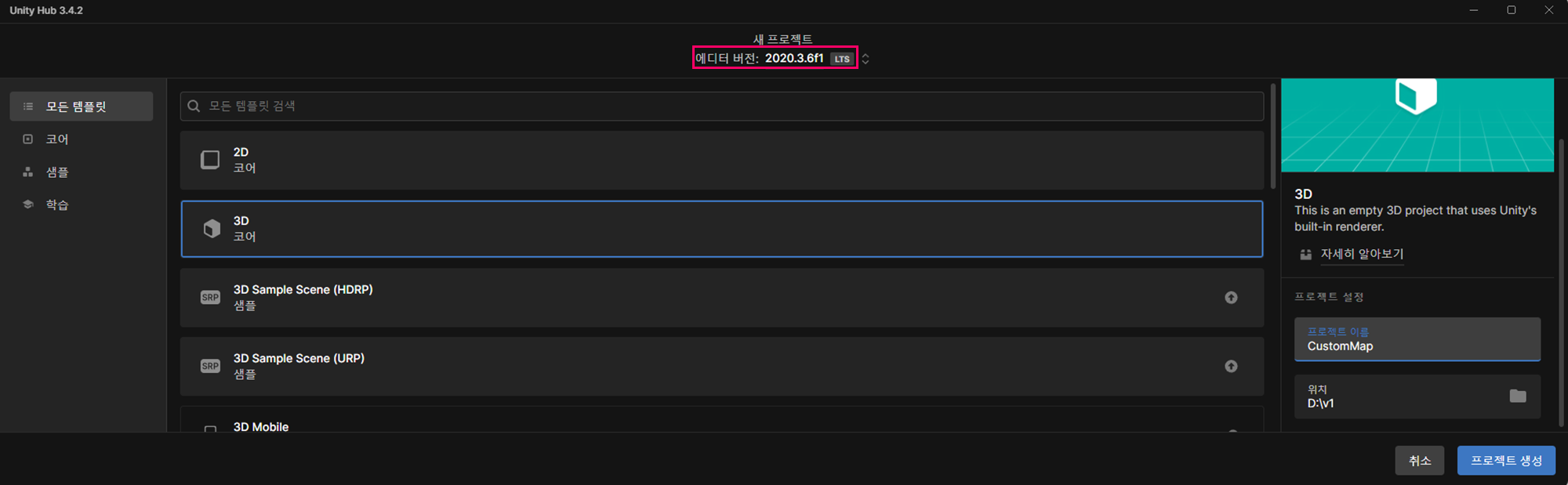 Unity Hub/ Untiy Editor Pro ver. 2020.3.6 → Download the Unity Hub