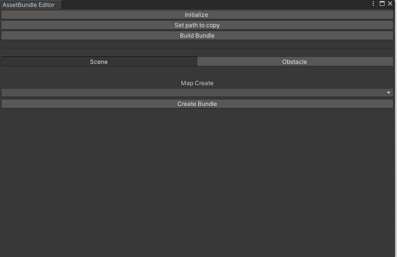 Initialize: Initialize the editor. The AssetBundle Editor is automatically initialized when running.