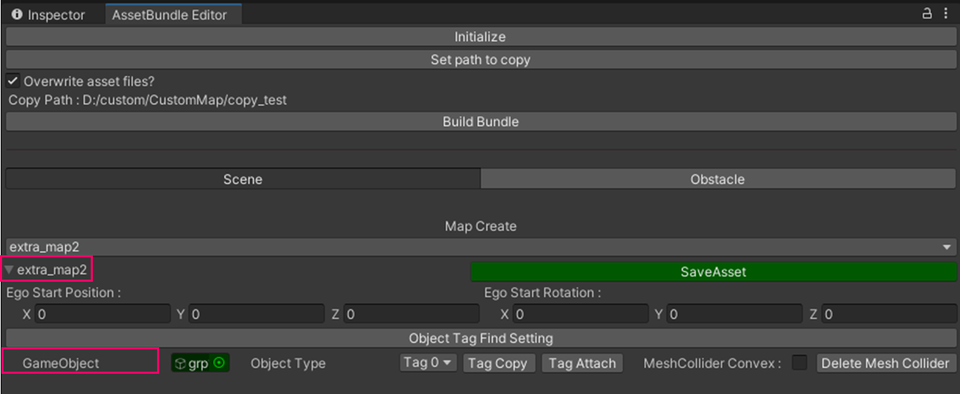 Click the selected map (Example: extra_map2) to see that a GameObject has been created under the Object Tag Find Setting.