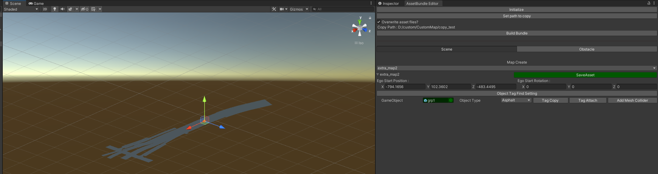 A custom map is composed of assets in the Unity environment, a 2D/3D graphic development engine. Therefore, the process is needed as below to generate and build the assets that make up the map and create a custom map before loading the map into the simulator.