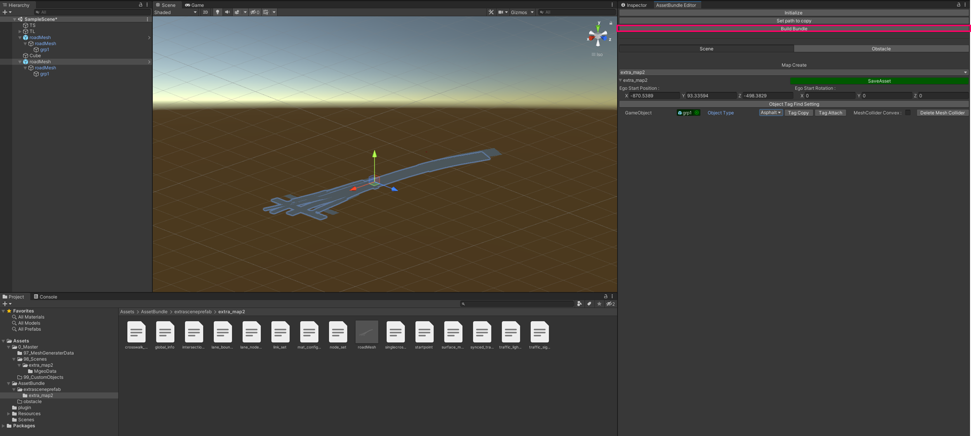 This page describes the process of creating a Road Mesh and a MGEO file as assets in the AssetBundle Editor and building them into a custom map.