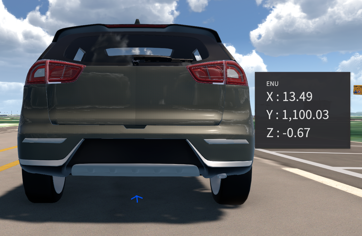 The vehicle's position (x, y, z) in the simulator uses the ENU coordinate system, based on the map's origin.