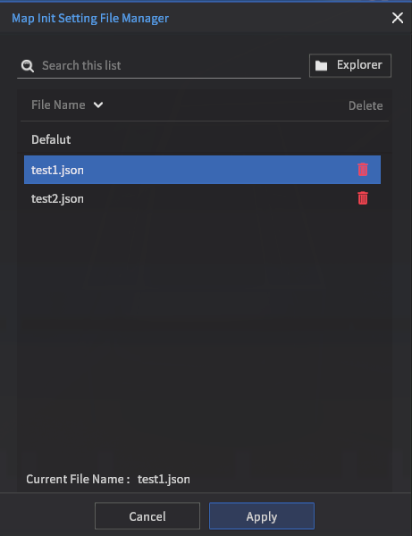 Delete the saved file in Map Init Setting File Manager