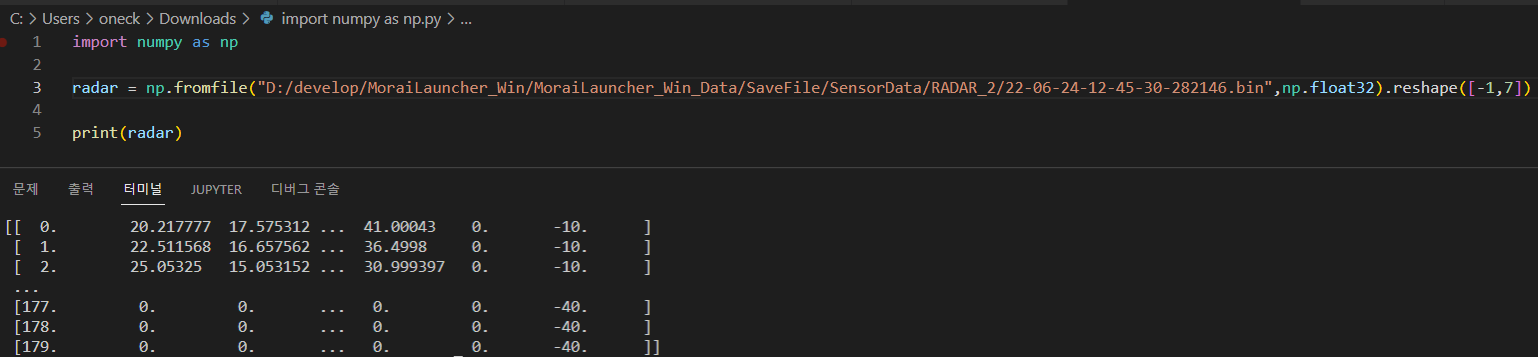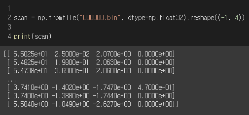 For Python users, you can load the 3D LiDAR point cloud data using the numpy library’s fromfile function as shown below:
