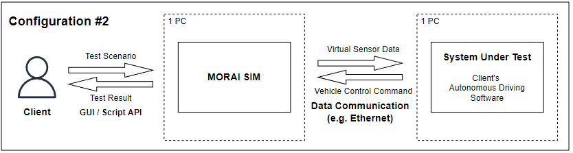 This setup runs the autonomous driving SW on a separate PC from the simulator.
