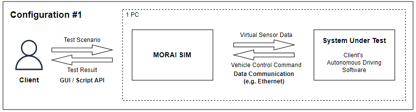 This setup runs both the autonomous driving SW and the simulator on the same PC.