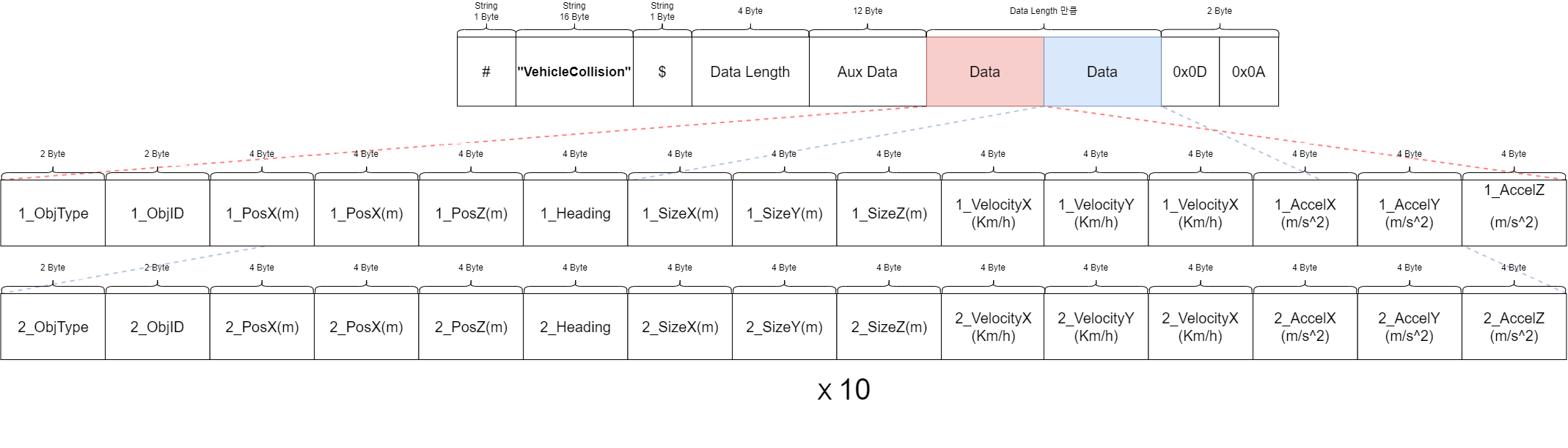 Object’s acceleration for object number 2 (4Byte * 3 / Accel_XYZ / float)