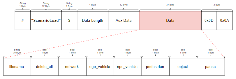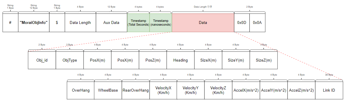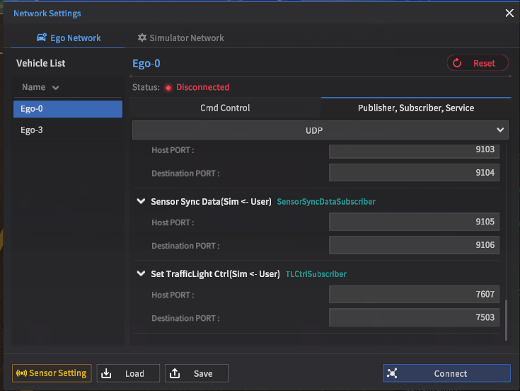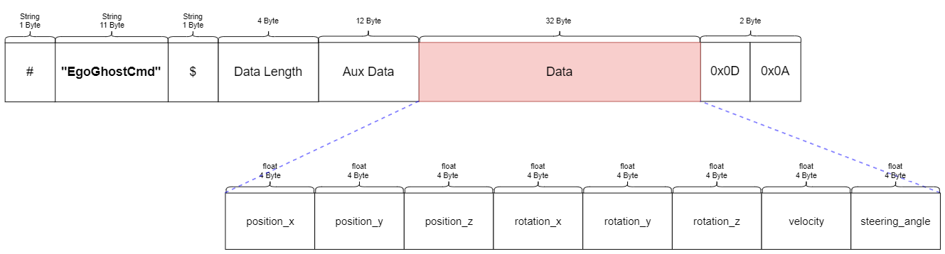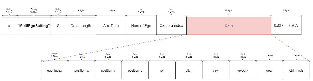 This section explains the message types, each packet structure, and the data size exchanged according to the UDP communication in the Ego Network and Simulator Network provided in the Network Settings.